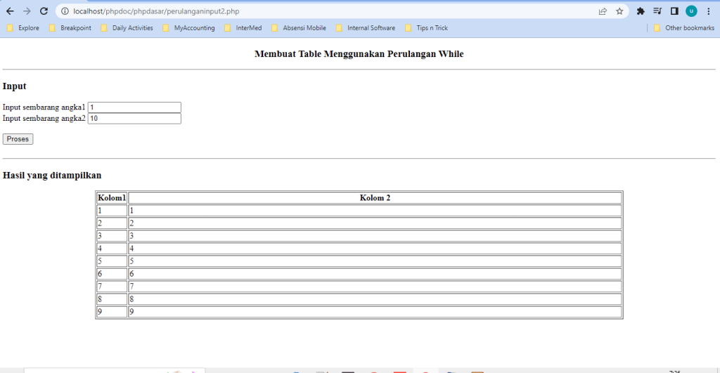 <h3 align="center">Membuat Table Menggunakan Perulangan While</h3>
